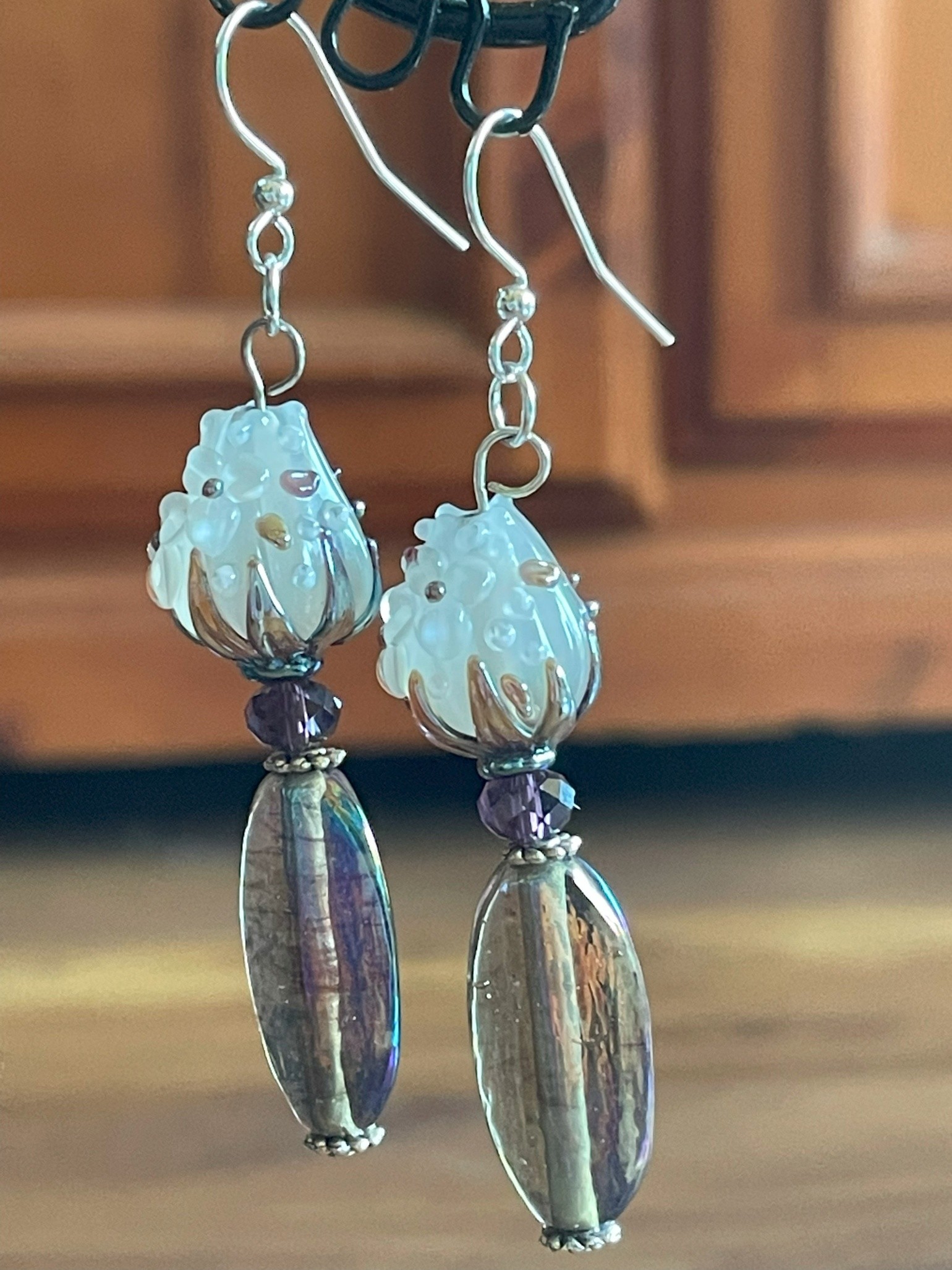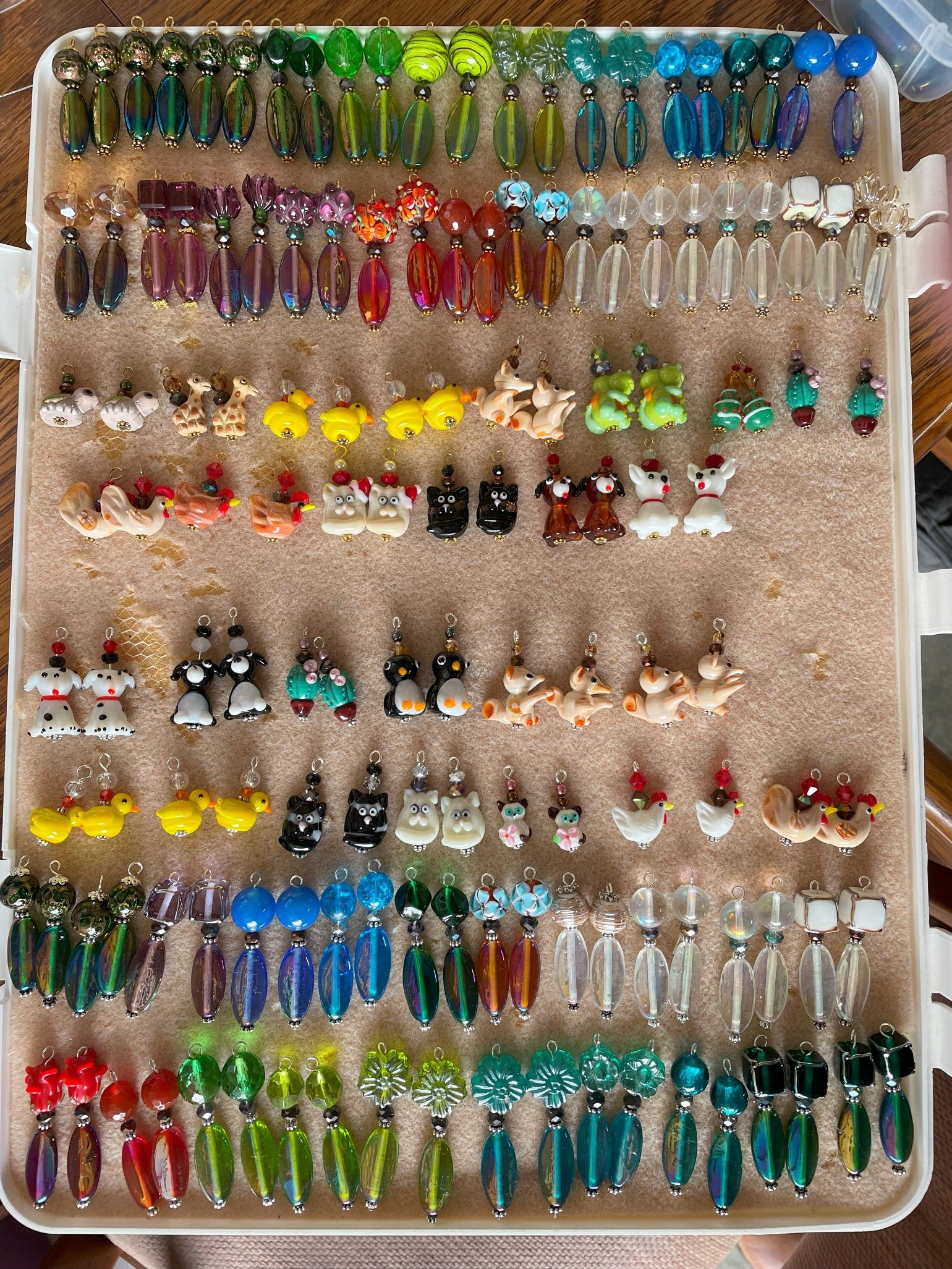 Hand-crafted Lampworked glass beads, each piece an incredible work of art, made by two wonderful ladies in Ukraine. Squirrels, Hippos, Dogs, Cats, Flowers, Lanterns, Succulents, Christmas Stockings and Trees, Angels and Unicorns, Cubes, Hearts and Ovals are just some of the Lampworked creations I have to offer! And the exquisite works of Mother Nature in natural and precious gemstones such as Agates, Labradorite, Aventurine, Jasper, Onyx, Fresh Water Pearls, Turquoise, Howlite, Hematite and more!!! These are just some of the materials I use to help to create each unique piece! I only use high-quality metals in my designs. For anyone with metal allergies, there is a material called Niobium! It comes in a variety of colors, and I am happy to use it in my jewelry designs!